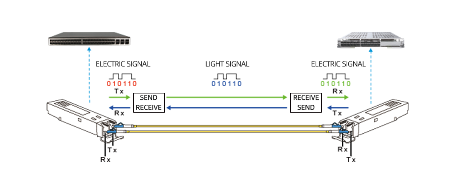 Optical modules typically include a laser diode or LED light source for emitting optical signals, as well as a light receiver (usually a photodiode or photodetector) for receiving optical signals and converting them into electrical signals.