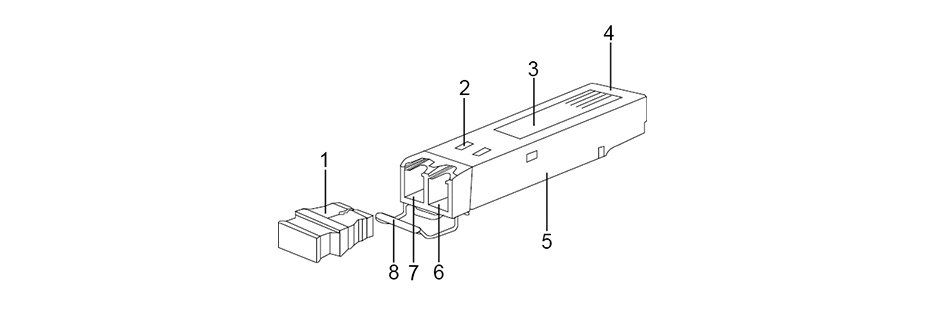 8.Pull Tab: Used for inserting and removing the optical module, and to aid in quick identification, pull tab colors may vary for different wavelength bands.
