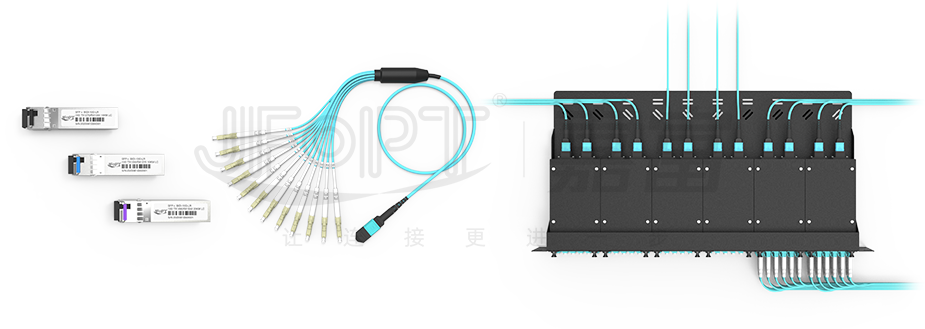 By connecting high-speed ports (MPO) with low-speed ports (LC), the conversion between 40G/100G and 10G/25G is achieved on one end.