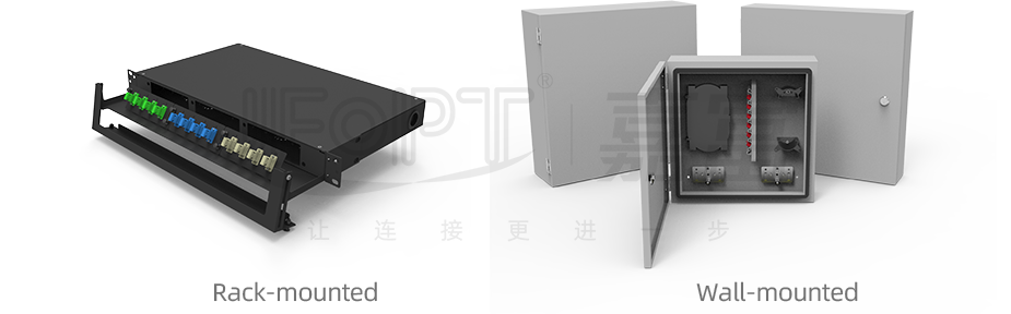 There are various types of Optical Fiber Distribution Boxes, including rack-mounted, cabinet-mounted, and wall-mounted. Among them, rack-mounted Optical Fiber Distribution Boxes are particularly suitable for installation in 19-inch standard racks. The height configuration of these distribution boxes is flexible and variable, and different rack units (RU) heights such as 1U, 2U, or 4U can be chosen according to different connection requirements. Here, "U" stands for "Unit" and is used to represent the height of network equipment.