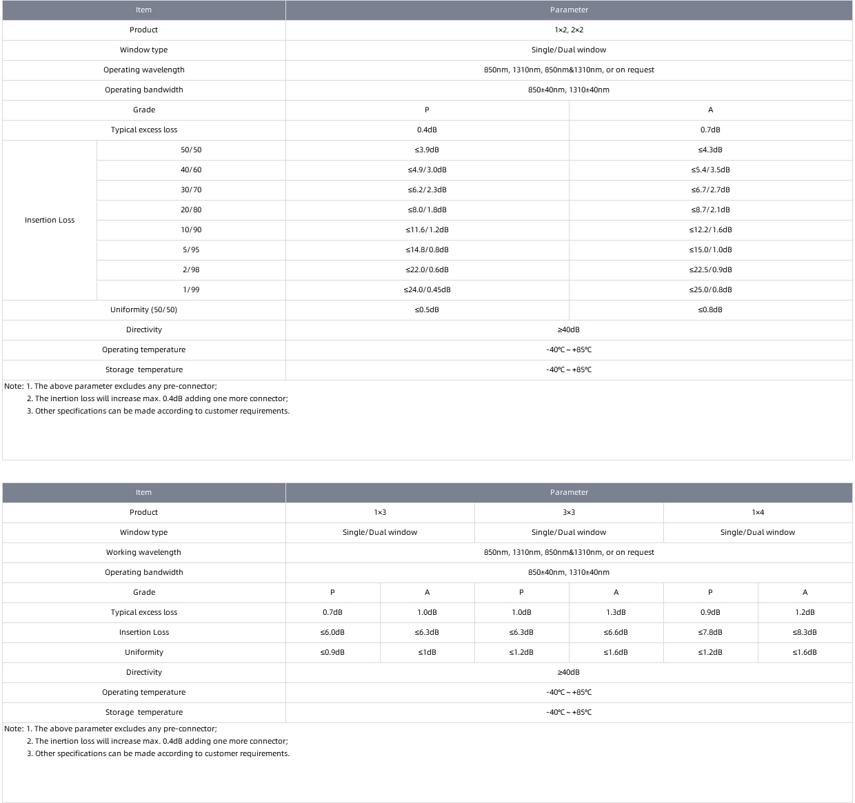 FBT coupler can couple optical signals in the coupling region of special structure, to reallocate the optical power. The splitting ratio of single coupling can be from 50 / 50 to 1/99. According to the working wavelength, the FBT coupler can be divided into single window (single wavelength) and double window (double wavelength), widely used in various optical communication systems.
