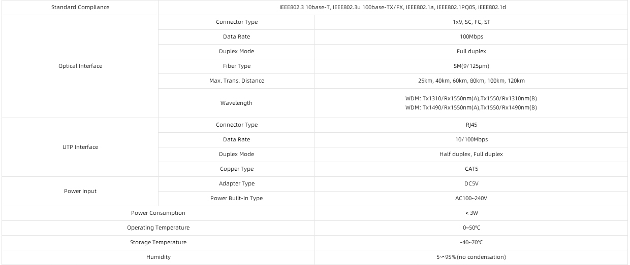 SM Single fiber 10/100M Media Converter is a device that converts the electrical and optical signals of 10/100M Ethernet, which can provide an economical path to extend the transmission distance of Ethernet from 100m to 120km.