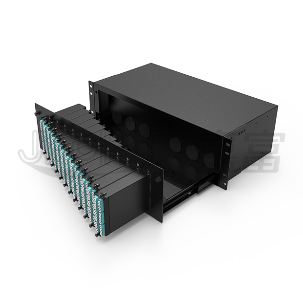 JFOPP-MPO30-B-001 3U MPO/MTP Patch Panel Max 288F adopts removable modular design and sliding rail design, remarkably convenient for installation and operation. It is mainly applied to high density fiber optic cabling systems, fast cabling systems, backbone networks, high integrated equipment and devices, data centers, SAN systems, etc.