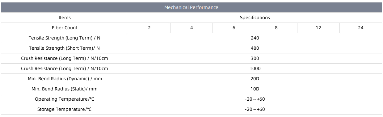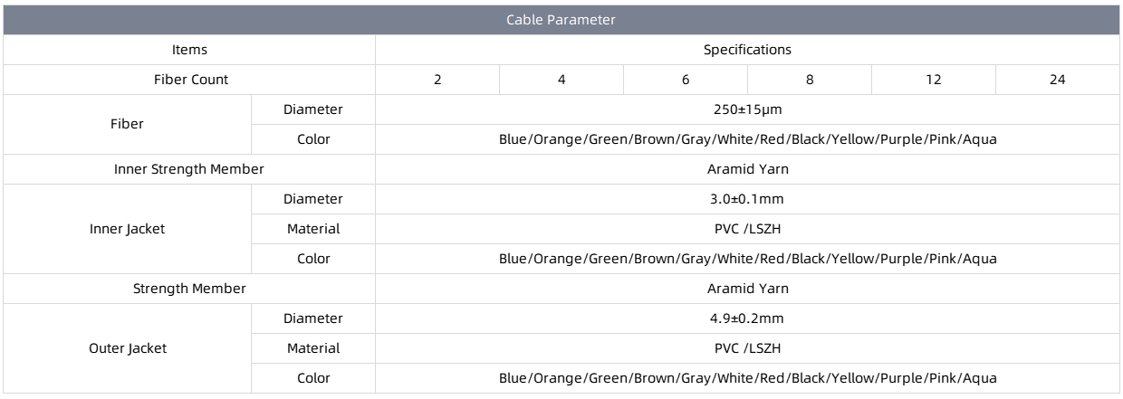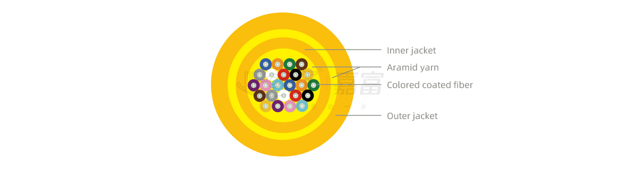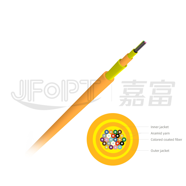 The JFOPT double sheath Mini cable uses multiple color-coated optical fibers as the optical transmission medium, with an added layer of aramid yarn as the strength member, forming a sub-cable. The sub-cable is further reinforced with an additional layer of aramid yarn and covered with a PVC or LSZH sheath to protect the internal structure. Compared to single sheath Mini cables, the dual-layer structure offers superior resistance to compression, abrasion, and tensile forces, making it suitable for use in more demanding environments.