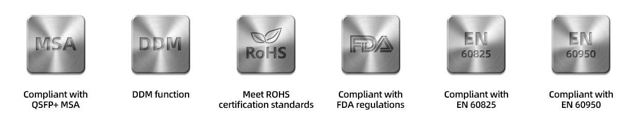 | Duplex LC connector interface, hot pluggable | Compliant with MSA SFP+ specification SFF-8431 | ||||||||