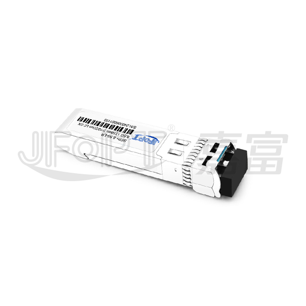 The JFOPT SFP+ 8.5G 1310nm 1.4/10/20km LC DX single mode transceiver is a compact, pluggable module designed for high-speed optical data communication. Featuring an SFP+ 20-pin connector, it supports hot plug capability. This module is optimized for single-mode fiber and operates at a nominal wavelength of 1310nm. The transmitter incorporates a 1310nm multiple quantum well FP laser, complying with Class 1 laser safety standards as per IEC-60825. The receiver utilizes an integrated InGaAs detector preamplifier (IDP) within the optical header, paired with a limiting post-amplifier IC for enhanced signal processing.