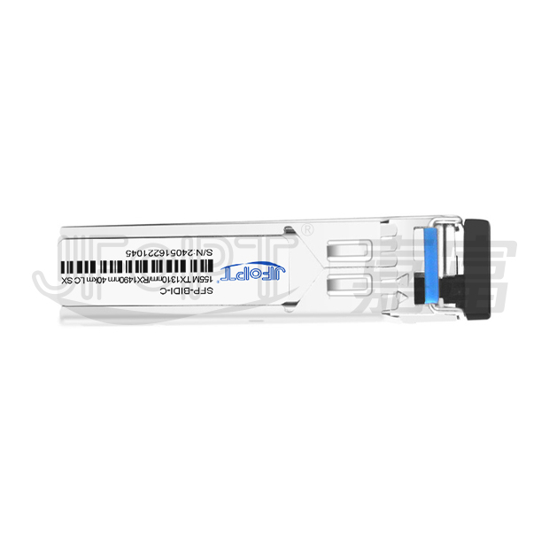 The JFOPT SFP BIDI 155M 1310/1490nm LC/SC Transceiver series is a compact, small form-factor pluggable module designed for single-fiber bi-directional communication. It supports IEEE 802.3ah 100BASE-BX20 standards and OC-3/STM-1 SONET/SDH applications, utilizing a 1310nm/1490nm transmitter paired with a 1490nm/1310nm receiver. Available for transmission distances of 10km, 20km, and 40km, this module features a 20-pin SFP connector for hot-plug capability, ensuring easy installation and maintenance. The transmitter section incorporates a high-performance multiple quantum well A-type/B-type laser, compliant with Class 1 laser safety standards under IEC 60825. The receiver section employs an advanced optical detection system, including an integrated B-type/A-type detector preamplifier (IDP) mounted in an optical header and a precision limiting post-amplifier IC, ensuring reliable signal reception and processing. The SFP BIDI 155M 1310/1490nm LC/SC Transceiver series is fully compliant with the SFF-8472 Multi-Source Agreement (MSA), guaranteeing industry-standard compatibility and interoperability for seamless integration into network systems.