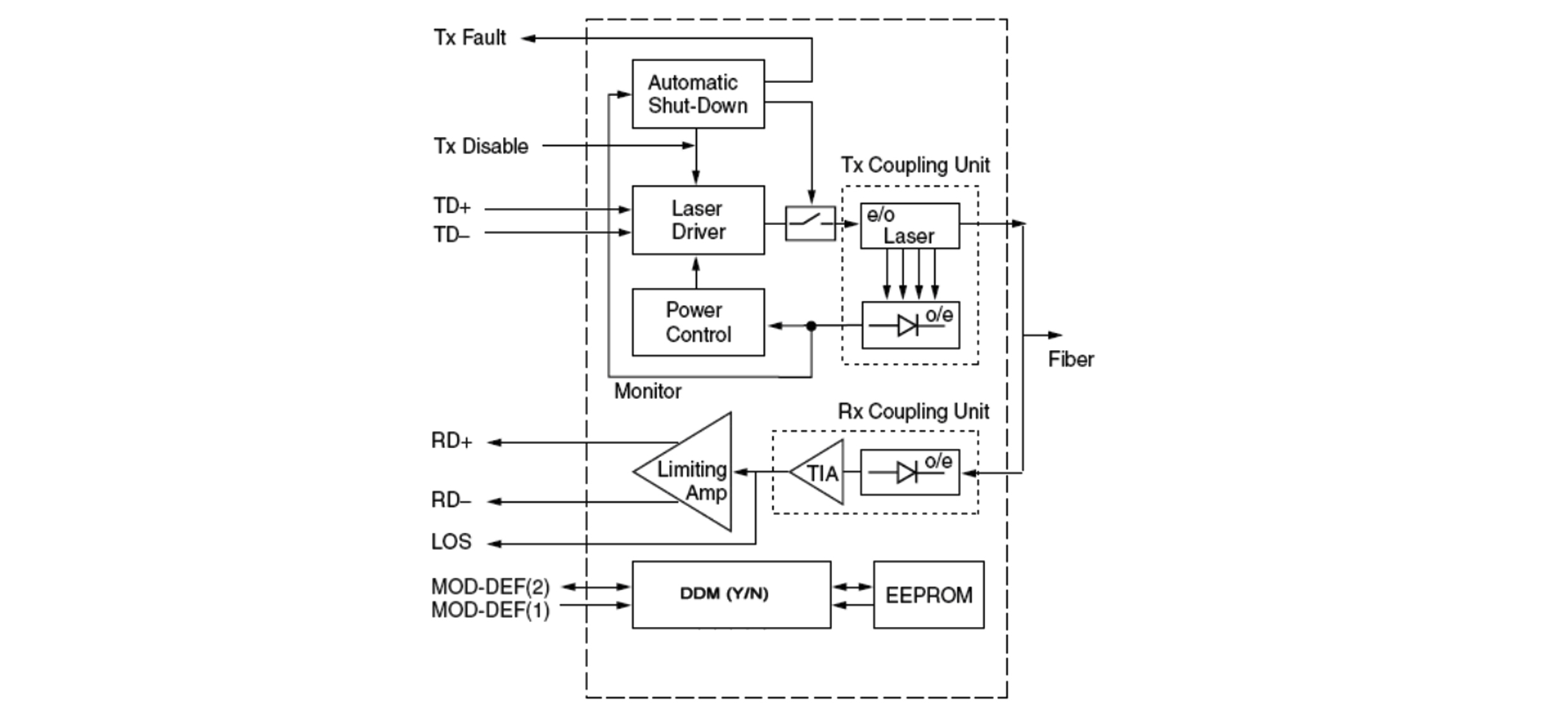 | 3 | TX Disable | Transmitter disable | 3 | 2) Module disables on high or open | |||||