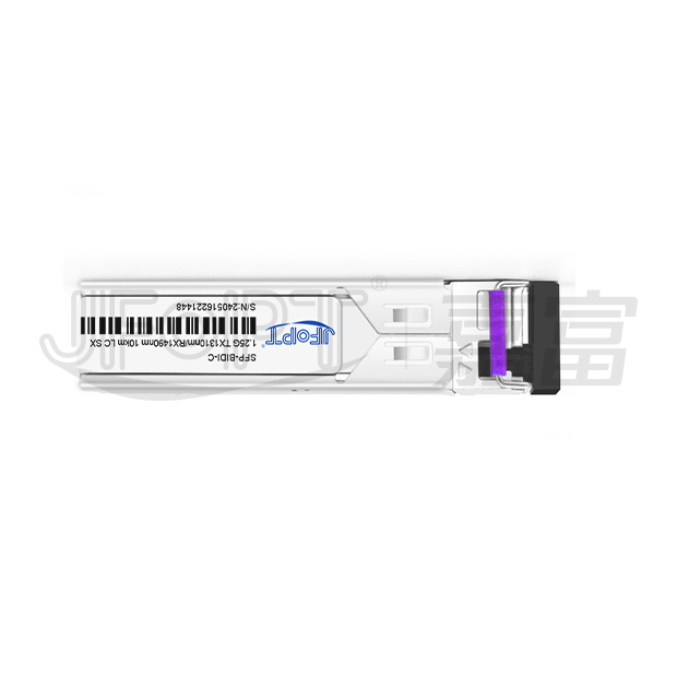 The JFOPT SFPBD-1.25-1314-055/3/10/20/40/60-LC/SC series (SFP BIDI 1.25G 1310/1490nm LC/SC SX Transceiver), a high-performance multi-rate transceiver designed for Gigabit Ethernet fiber communications, features a compact small form-factor pluggable module supporting bi-directional communication over single fiber via a 1310nm/1490nm transmitter paired with a 1490nm/1310nm receiver. Available for transmission distances of 550 meters, 3km, 10km, 20km, 40km, and 60km with a 20-pin SFP connector enabling hot-plug capability for easy installation and maintenance, its transmitter section incorporates a high-quality multiple quantum well A-type/B-type laser compliant with IEC 60825 Class 1 laser safety standards, while the receiver section employs an advanced optical detection system including an integrated B-type/A-type detector preamplifier (IDP) mounted in an optical header and a precision limiting post-amplifier IC to ensure reliable signal reception and processing, with full compliance to SFF-8472 SFP Multi-Source Agreement (MSA) guaranteeing industry-standard compatibility and interoperability for seamless network integration.