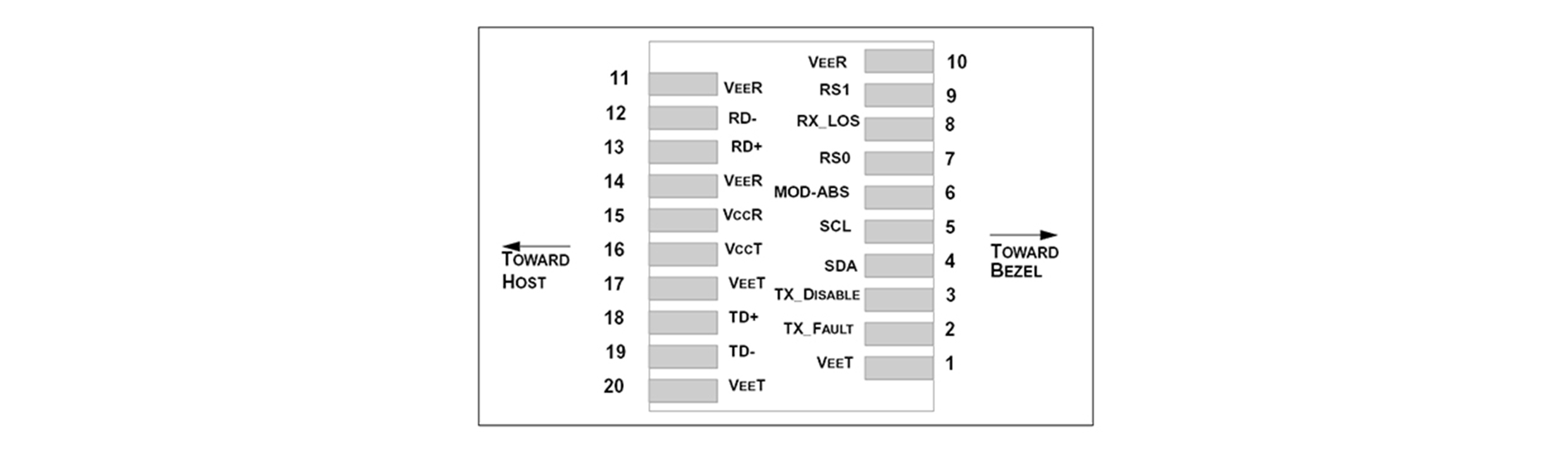 | 3 | TX disable | Transmitter disable | 3 | Note 2, module disables on high or open | ||||