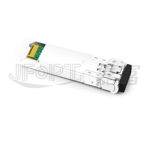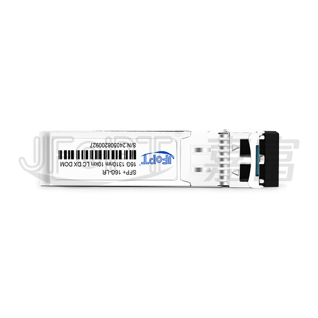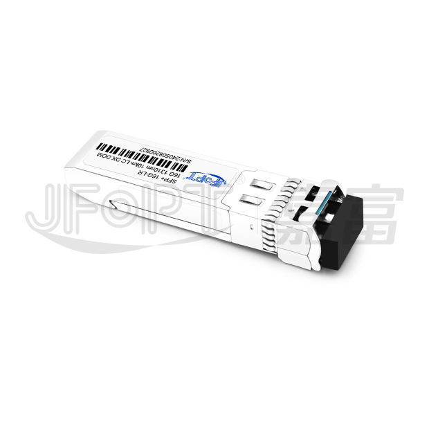 The JFOPT SFP+ 16G 1310nm 10km LR LC DX series single-mode transceiver is a compact, pluggable module designed for serial optical data communications, including 16x/8x/4x Fiber Channel applications. It features an SFP+ 20-pin connector, enabling hot-plug capability. Optimized for single-mode fiber, this module operates at a nominal wavelength of 1310nm. The transmitter uses a 1310nm multiple quantum well DFB laser, compliant with Class 1 laser safety standards under IEC-60825. The receiver integrates an InGaAs detector preamplifier (IDP) within an optical header, paired with a limiting post-amplifier IC for reliable signal processing.
