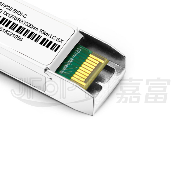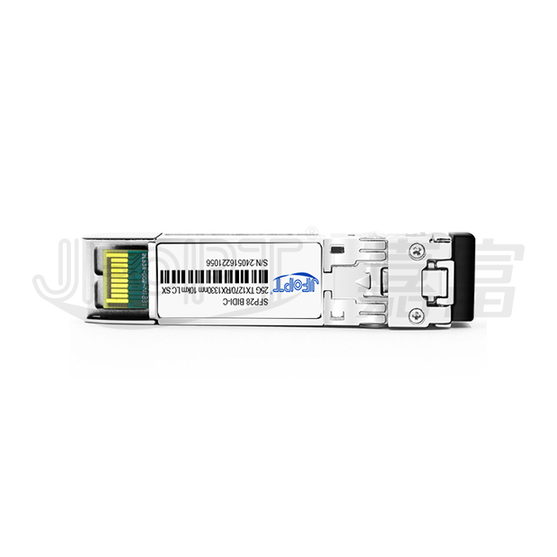 The JFOPT SFP28 BIDI 25G 1270/1330nm 10km LR LC SX transceivers are high-performance modules designed for Ethernet links, supporting data rates of up to 25.78Gbps and transmission distances of up to 10km. These transceivers are compliant with SFF-8472 and are compatible with SFF-8432 and relevant parts of SFF-8431 standards.Additionally, the product meets RoHS compliance and is lead-free, adhering to Directive 2011/96/EU, making it an environmentally friendly and reliable solution for high-speed networking applications.