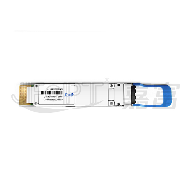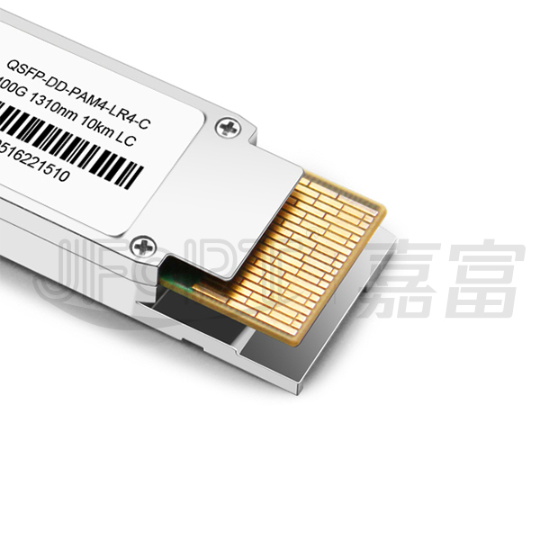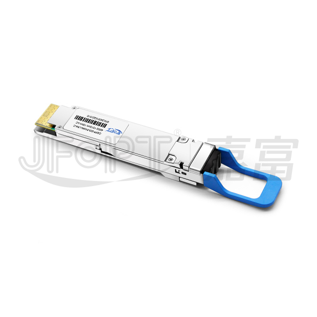 The JFOPT QSFP-DD 400G (4x100G) 1310nm 10km LR4 LC DX Transceiver is a high-performance 400Gb/s Quad Small Form Factor Pluggable-Double Density (QSFP-DD) optical module designed for optical communication over distances up to 10km. This module converts 8 channels of 50Gb/s (PAM4) electrical input into 4 CWDM optical signals, multiplexing them into a single channel for 400Gb/s optical transmission. On the receiver side, it de-multiplexes the 400Gb/s optical input into 4 CWDM optical signals and converts them back into 8 channels of 50Gb/s (PAM4) electrical output.The 4 CWDM channels have central wavelengths of 1271nm, 1291nm, 1311nm, and 1331nm, as defined by the CWDM wavelength grid in ITU-T G.694.2. The transceiver features a duplex LC connector for the optical interface and a 76-pin connector for the electrical interface. To ensure optimal performance over long distances, single-mode fiber (SMF) must be used.Additionally, host Forward Error Correction (FEC) is required to support transmission distances of up to 10km.This module is designed for reliability and efficiency, making it an ideal solution for high-speed, long-range optical communication in advanced network systems.