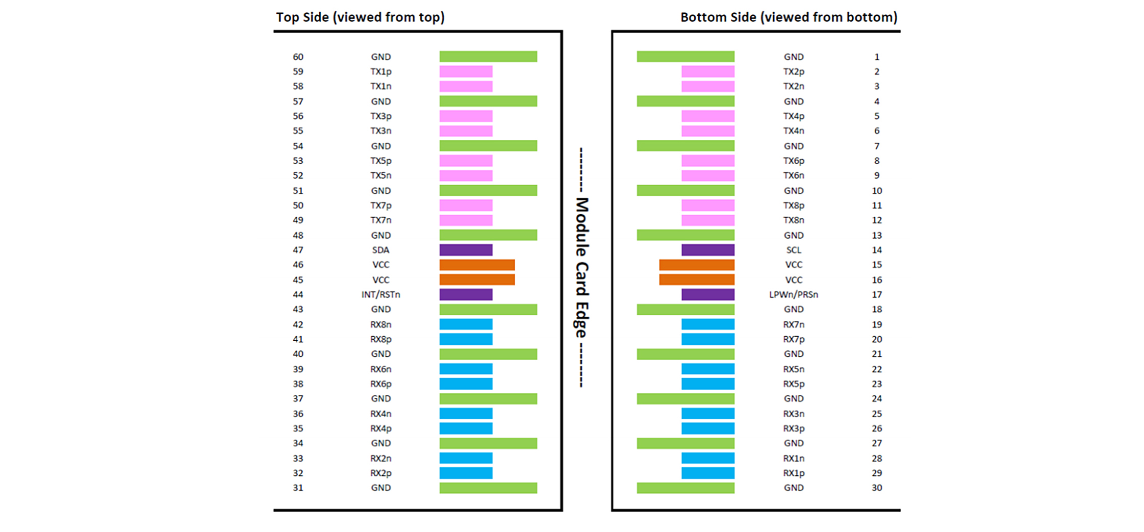 | 8x106Gbps PAM4 transmitter and PAM4 receiver | 8 channels 850nm VCSEL laser array and 8 channels PIN photo-detector array | ||||||||