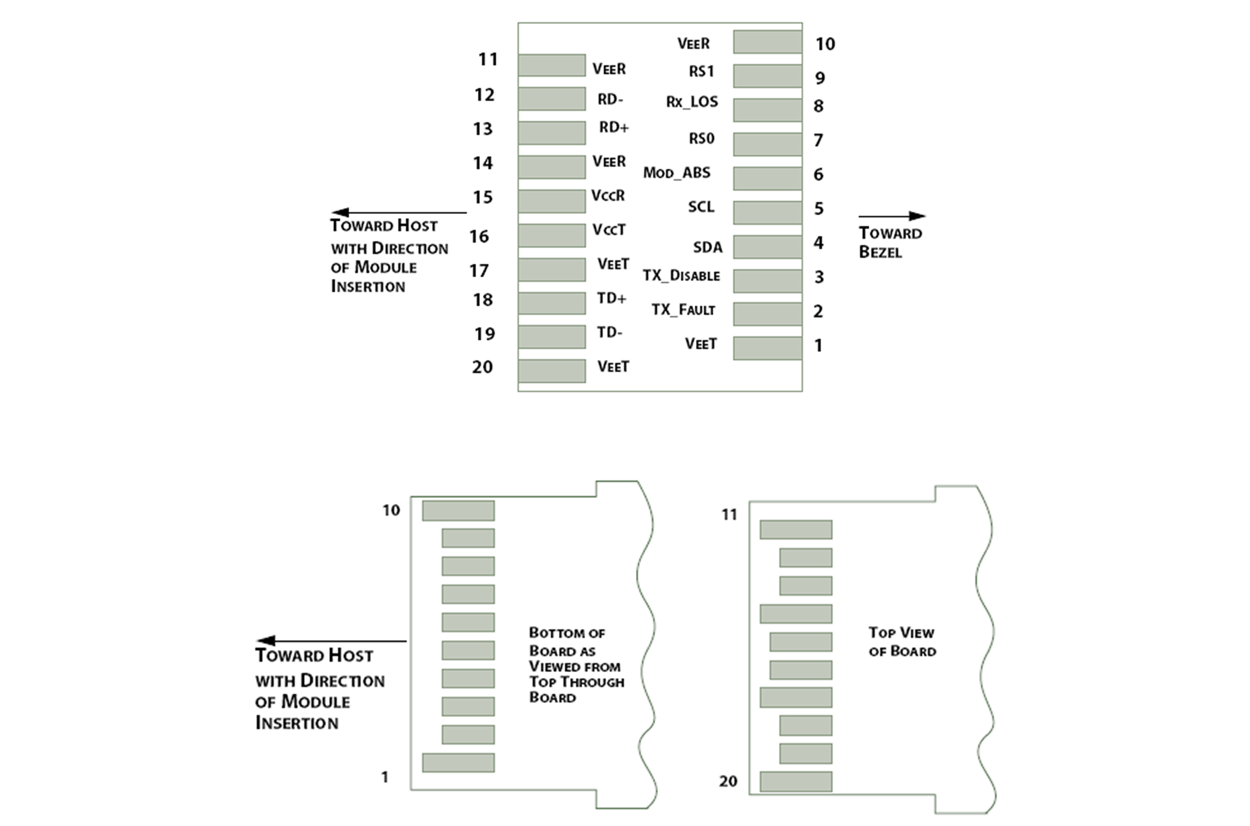 | Note: 1. Module ground pins GND are isolated from the module case. 2. Shall be pulled up with 4.7K-10Kohms to a voltage between 3.15V and 3.45V on the host board. |