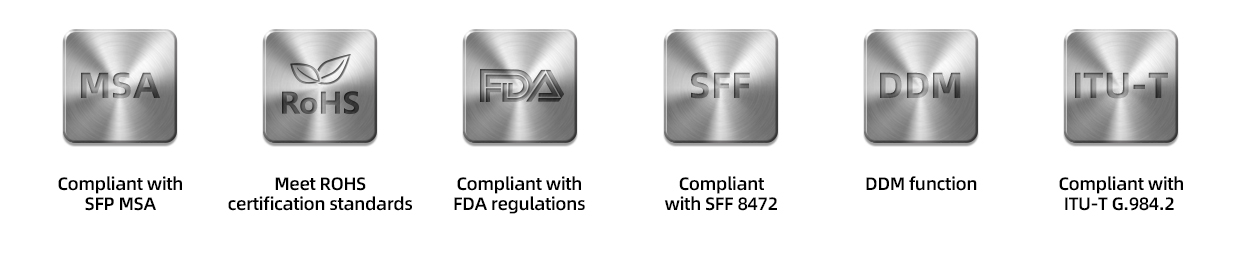 | JFTSM-SFP-GPON-C++2.5/1.25-1413-20-SCS | 2.5/1.25G | 4.5~10dBm | SC | Single Fiber | 20km | 0~+70°C | YES | ||