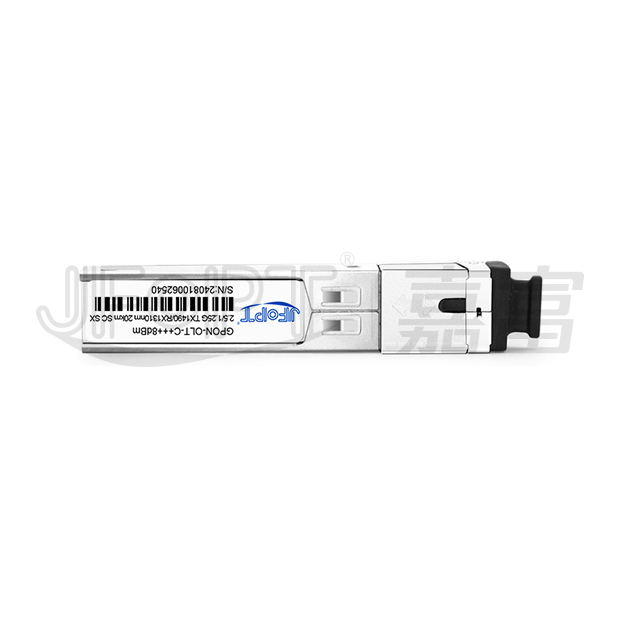 The JFOPT GPON OLT C++ 7dBm Transceiver is a premium-grade SFP module engineered for Optical Line Terminal applications, delivering high-speed asymmetric data transmission at 2.488Gbps downstream (1490nm) and 1.244Gbps upstream (1310nm) over single-mode fiber with 20km reach. Featuring an SC/UPC connector interface and compliant with the enhanced GPON C++ class offering a 7dBm optical budget, this transceiver enables bidirectional communication on a single fiber while supporting Digital Diagnostic Monitoring (DDM) per SFF-8472 for real-time performance tracking. It fully meets ITU-T G.984.2 standards and RoHS compliance requirements.